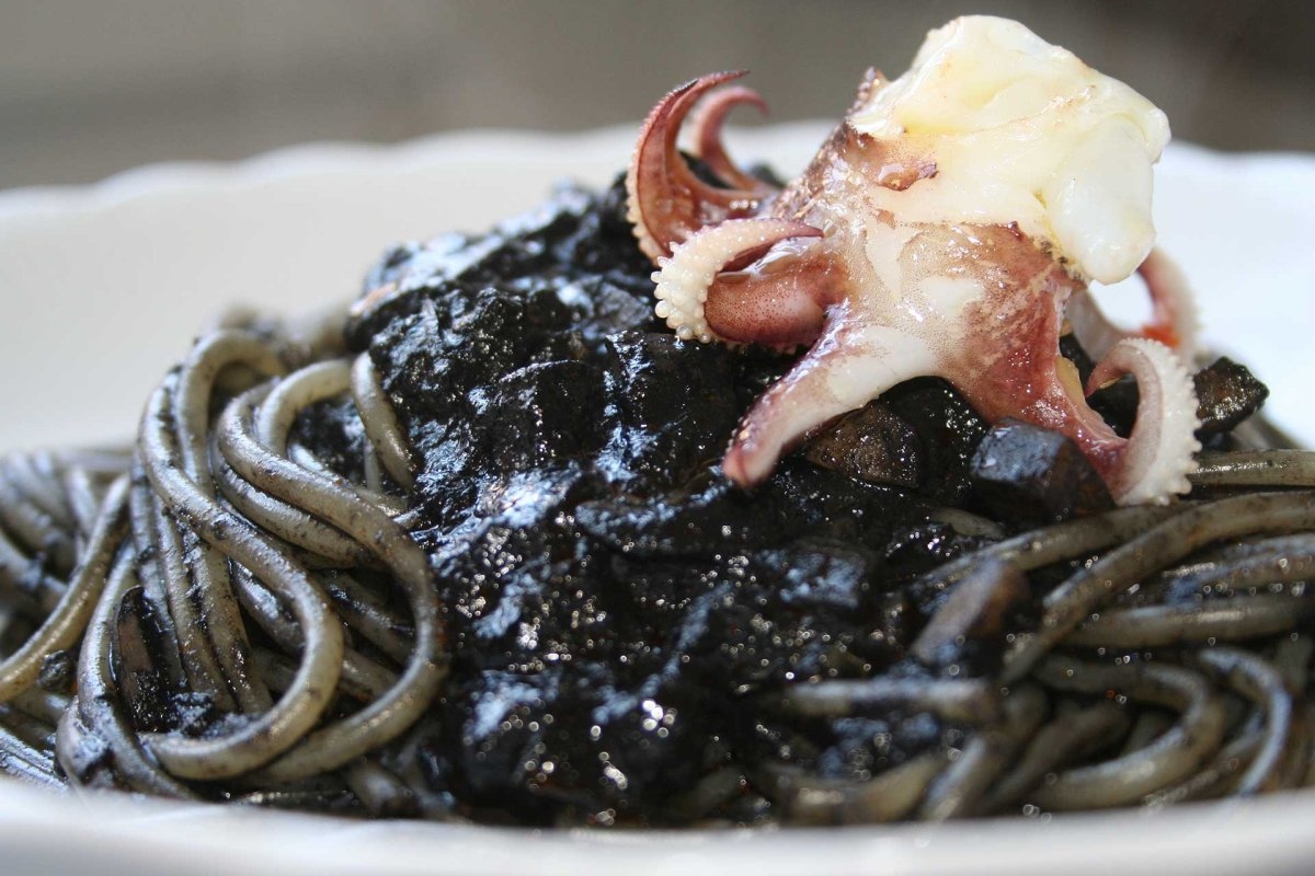 Nelle ricette tradizionali di mare, l’inchiostro veniva aggiunto direttamente dal guscio del calamaro, senza essere filtrato.